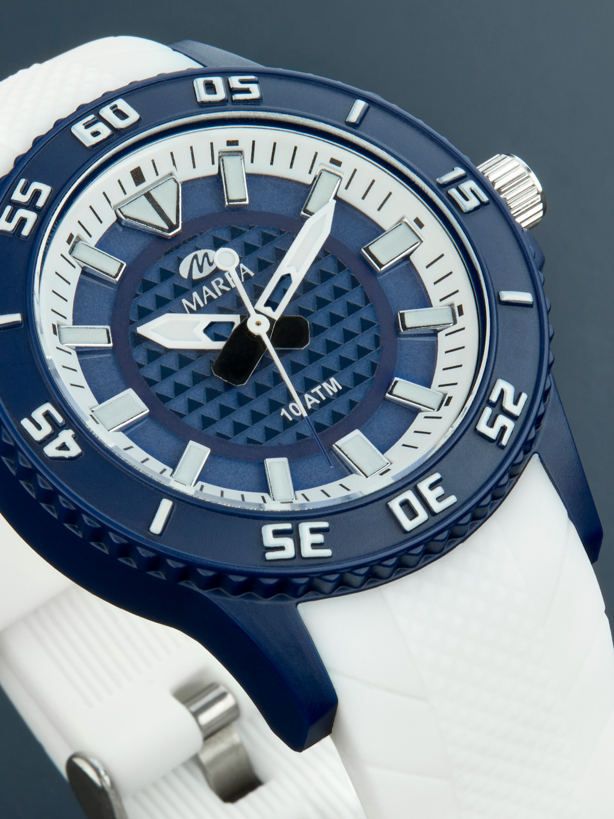 Material Brazalete: Caucho color blanco con hebilla de acero.