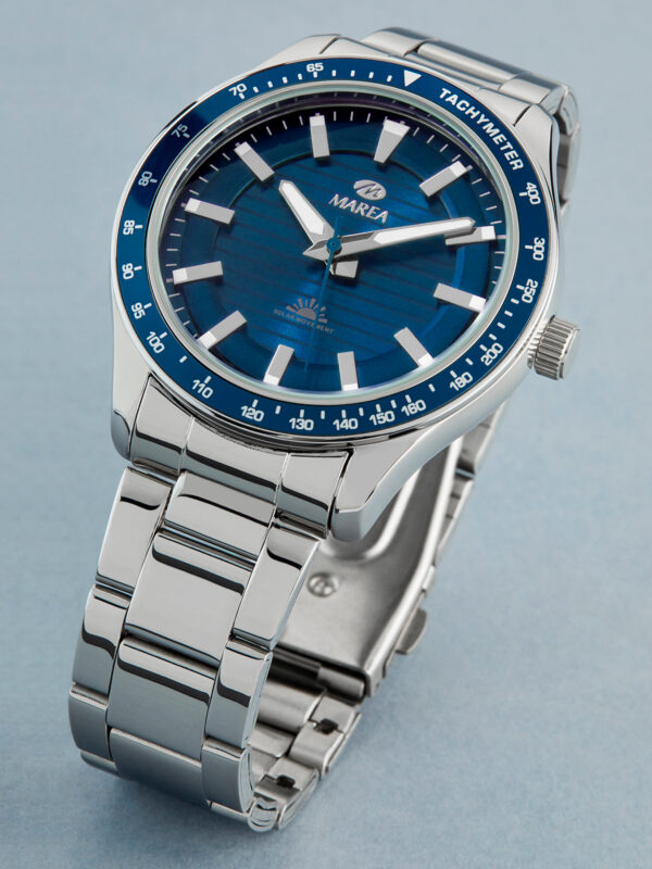 Movimiento japonés de carga solar: 3 agujas. Diámetro Caja: 42 mm. Material Caja: Metal. Material Brazalete: Acero/Steel. Resistente al agua: 5 ATM.