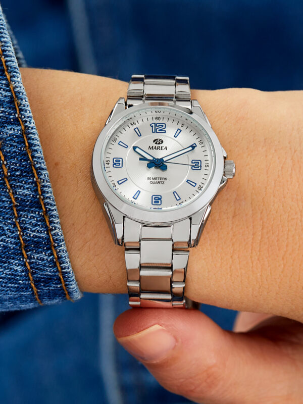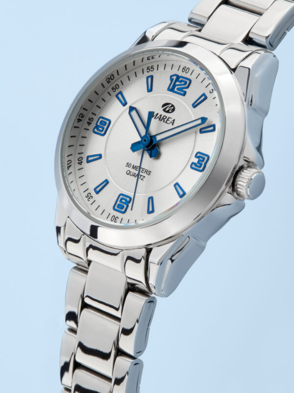 Diámetro Caja: 28mm/6,56mm Material Caja: Metal. Material Brazalete: Acero/Steel. Resistente al agua: 5 ATM.
