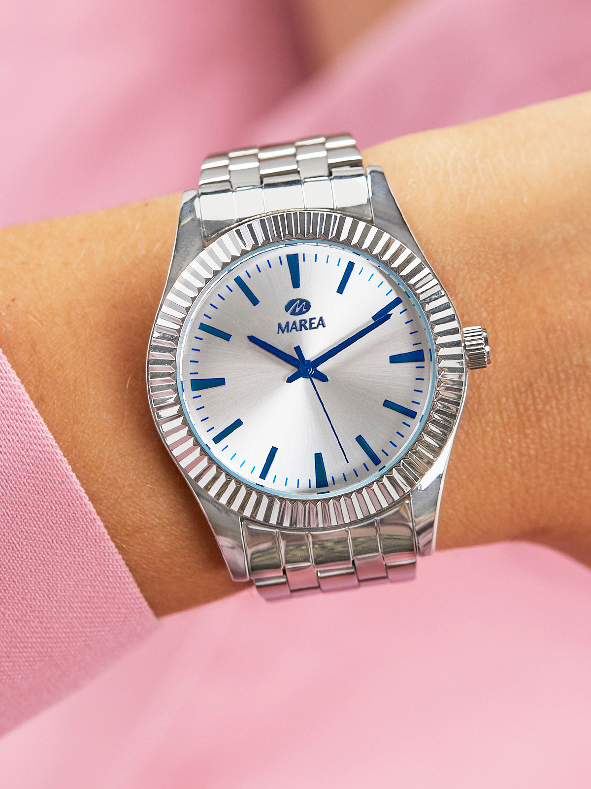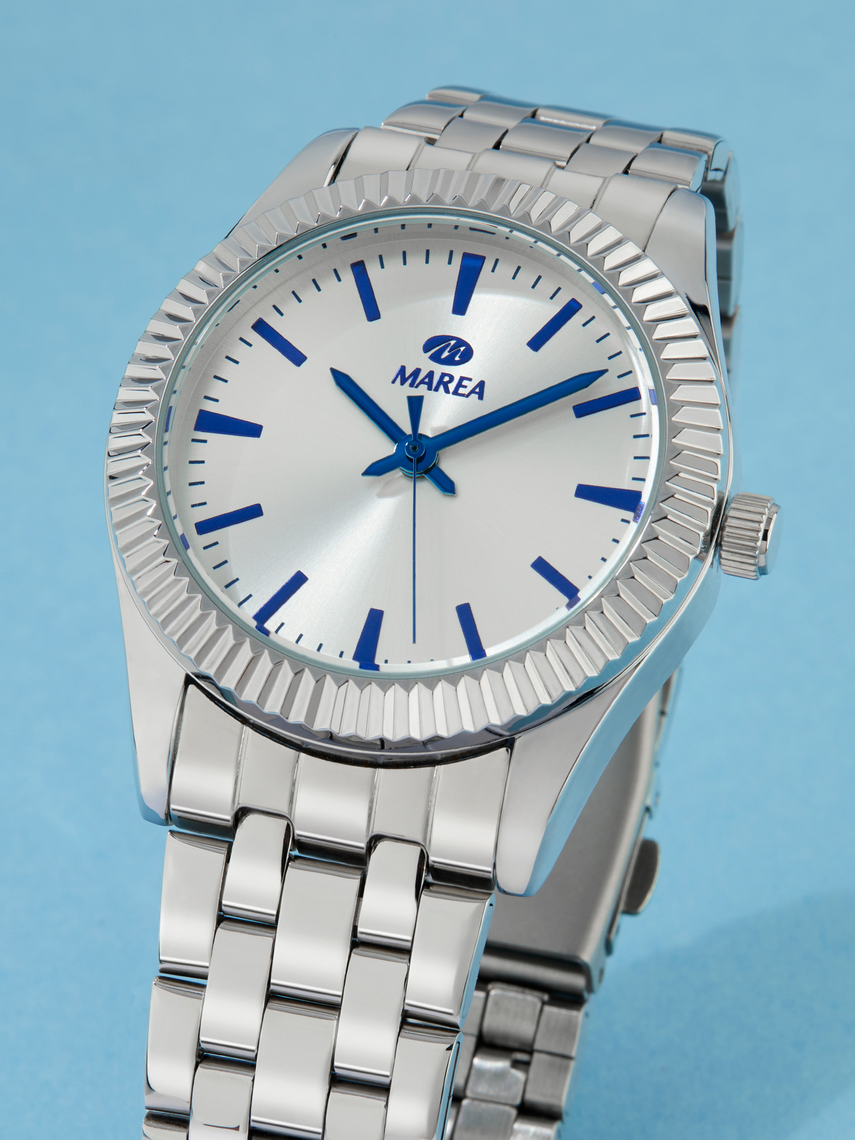 Movimiento japonés: 3 agujas. Diámetro Caja: 38 mm. Material Caja: Metal. Material Brazalete: Acero/Steel. Resistente al agua: 5ATM.