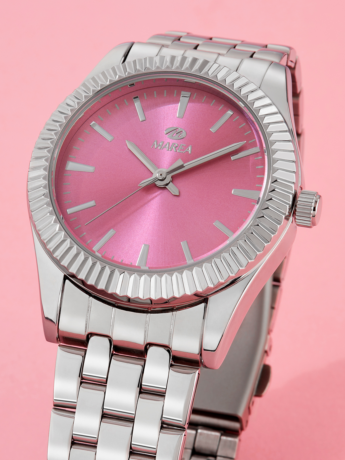 Movimiento japonés: 3 agujas. Diámetro Caja: 38 mm. Material Caja: Metal. Material Brazalete: Acero/Steel. Resistente al agua: 5ATM.