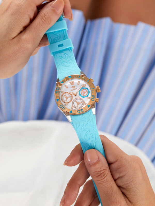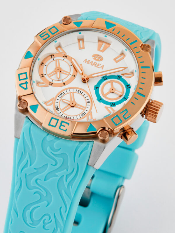 Movimiento japonés: 3 agujas. Diámetro Caja: 38 mm. Material Caja: Metal. Material Brazalete: Silicona. Resistente al agua: 10ATM.