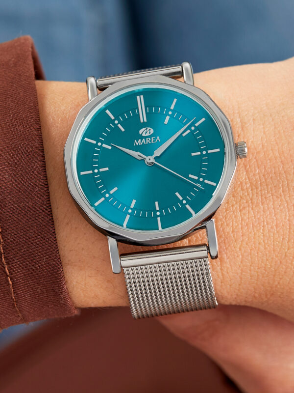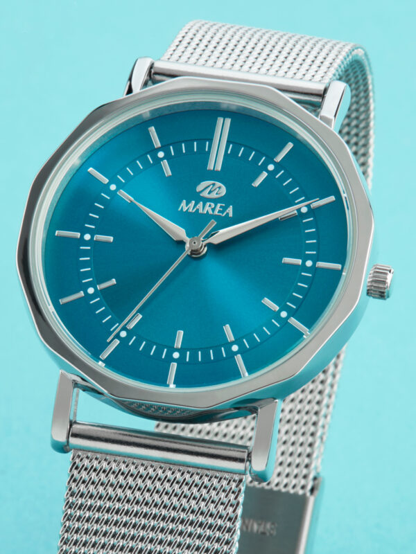 Movimiento japonés: 3 agujas Diámetro Caja: 36mm/5,70mm. Material Caja: Metal Material Brazalete: Acero/Steel Esfera: Color azul Resistente al agua: 3 ATM