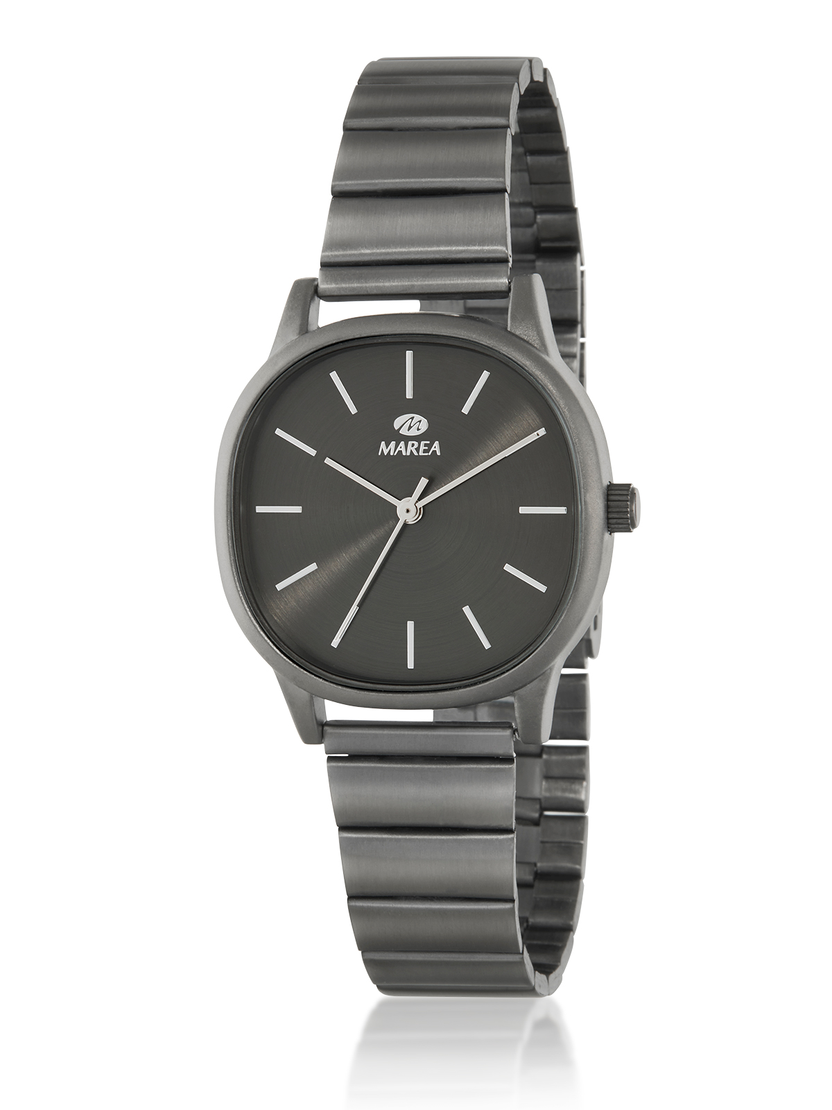 Movimiento japonés: 3 agujas Diámetro Caja: 32 mm. Material Caja: Metal. Material Brazalete: Acero/Steel Esfera: Color negro Resistente al agua: 3 ATM