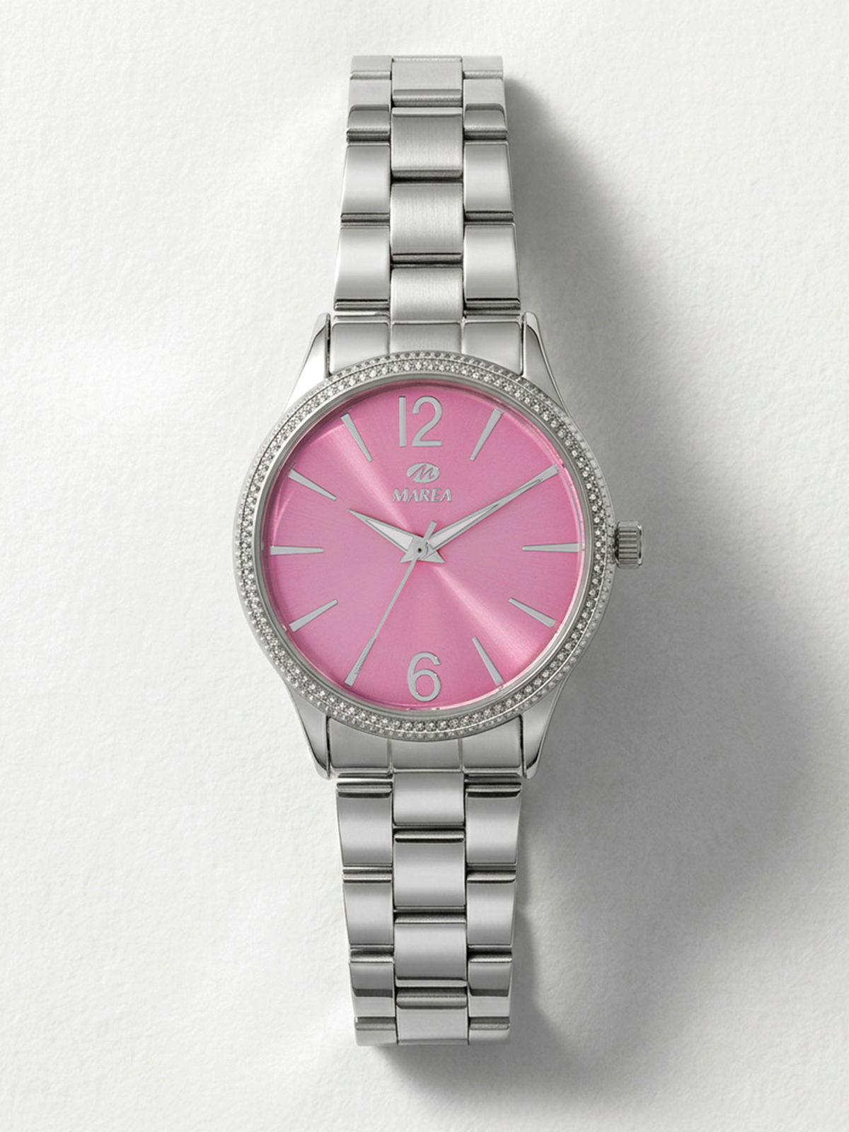 Movimiento japonés: 3 agujas Diámetro Caja: 36 mm. Material Caja: Metal. Material Brazalete: Acero/Steel Esfera: Color rosa. Resistente al agua: 5ATM