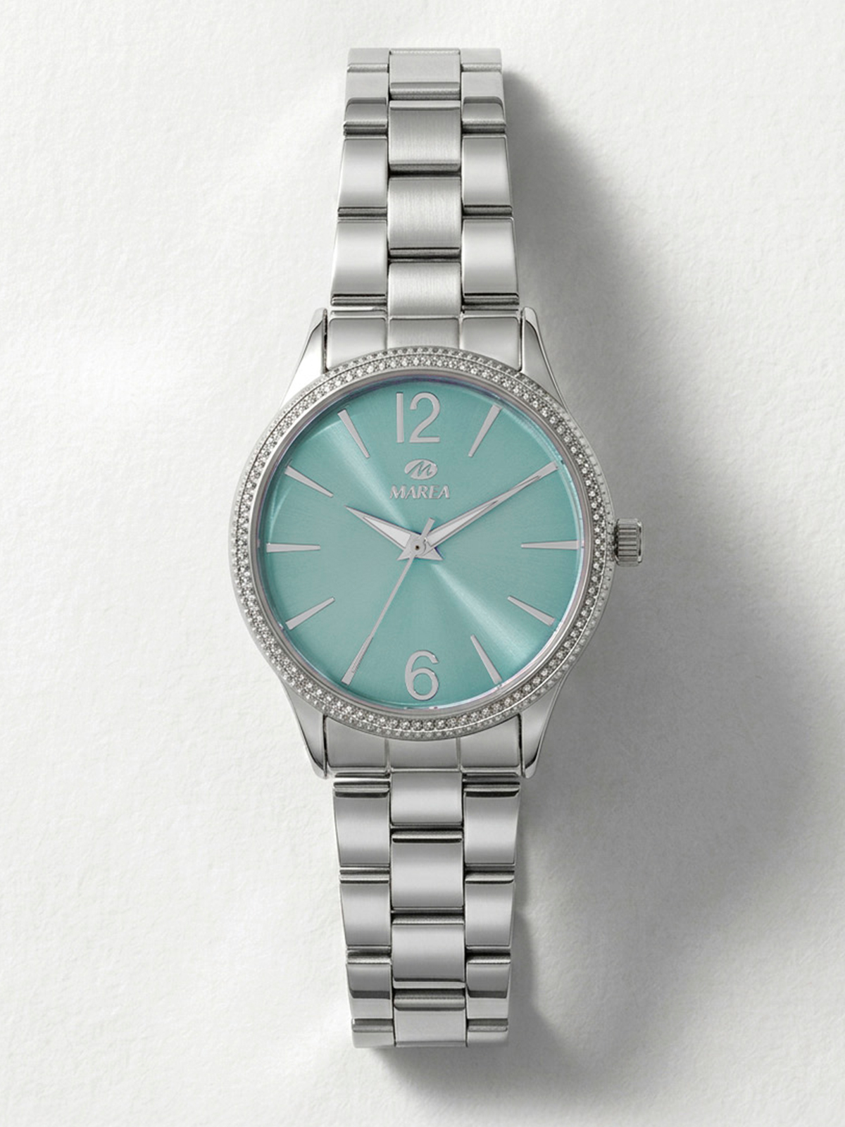 Movimiento japonés: 3 agujas Diámetro Caja: 36 mm. Material Caja: Metal. Material Brazalete: Acero/Steel Esfera: Color turquesa. Resistente al agua: 5ATM