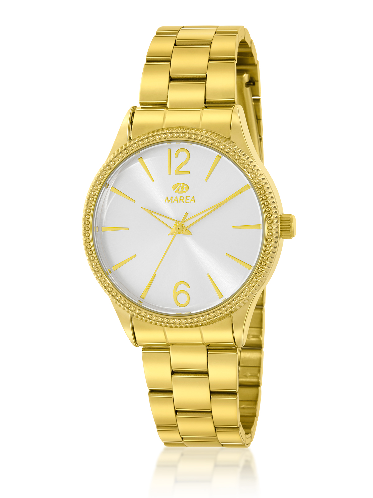 Movimiento japonés: 3 agujas Diámetro Caja: 36 mm. Material Caja: Metal. Material Brazalete: Acero/Steel Esfera: Color blanco. Resistente al agua: 5ATM