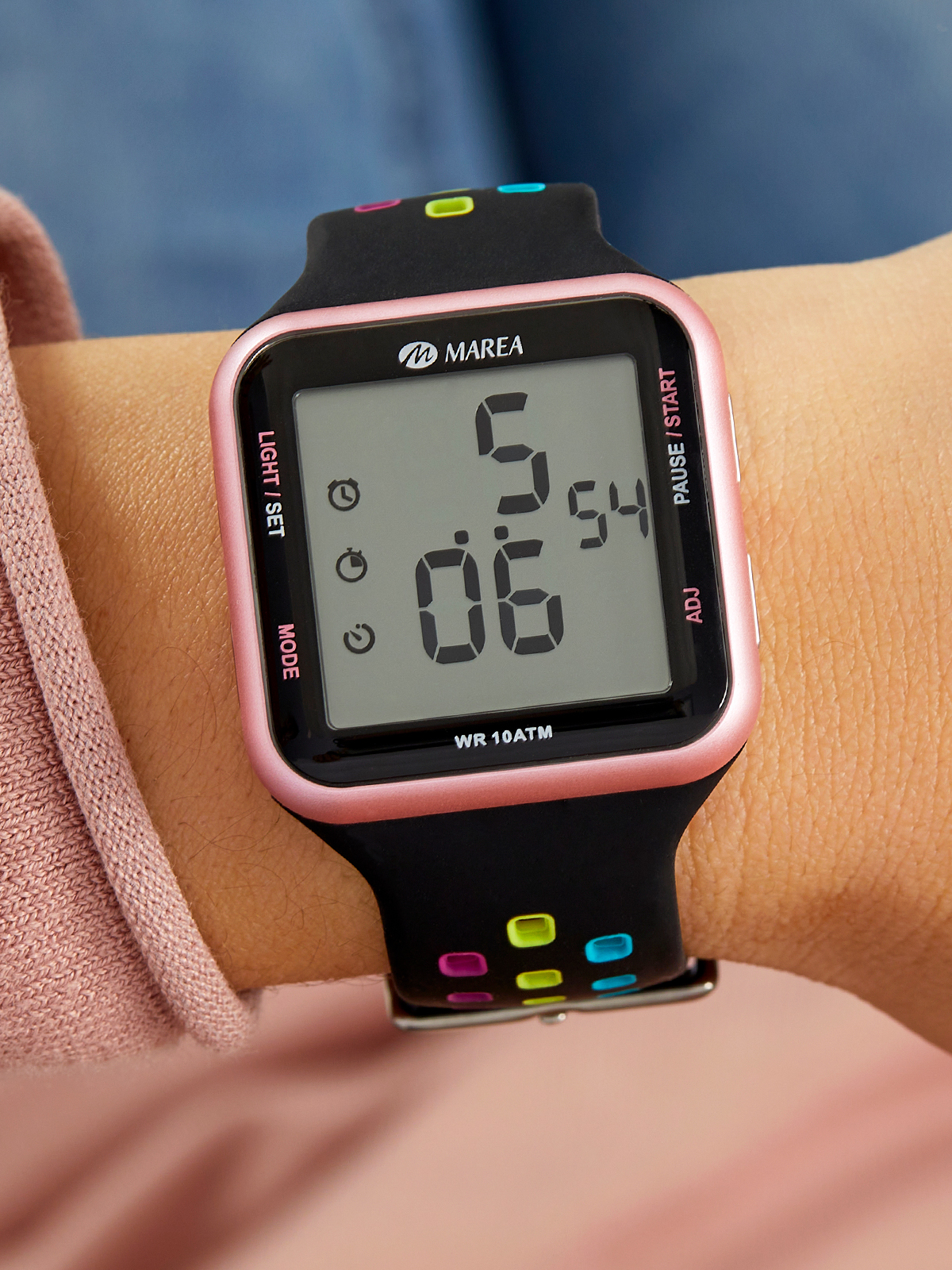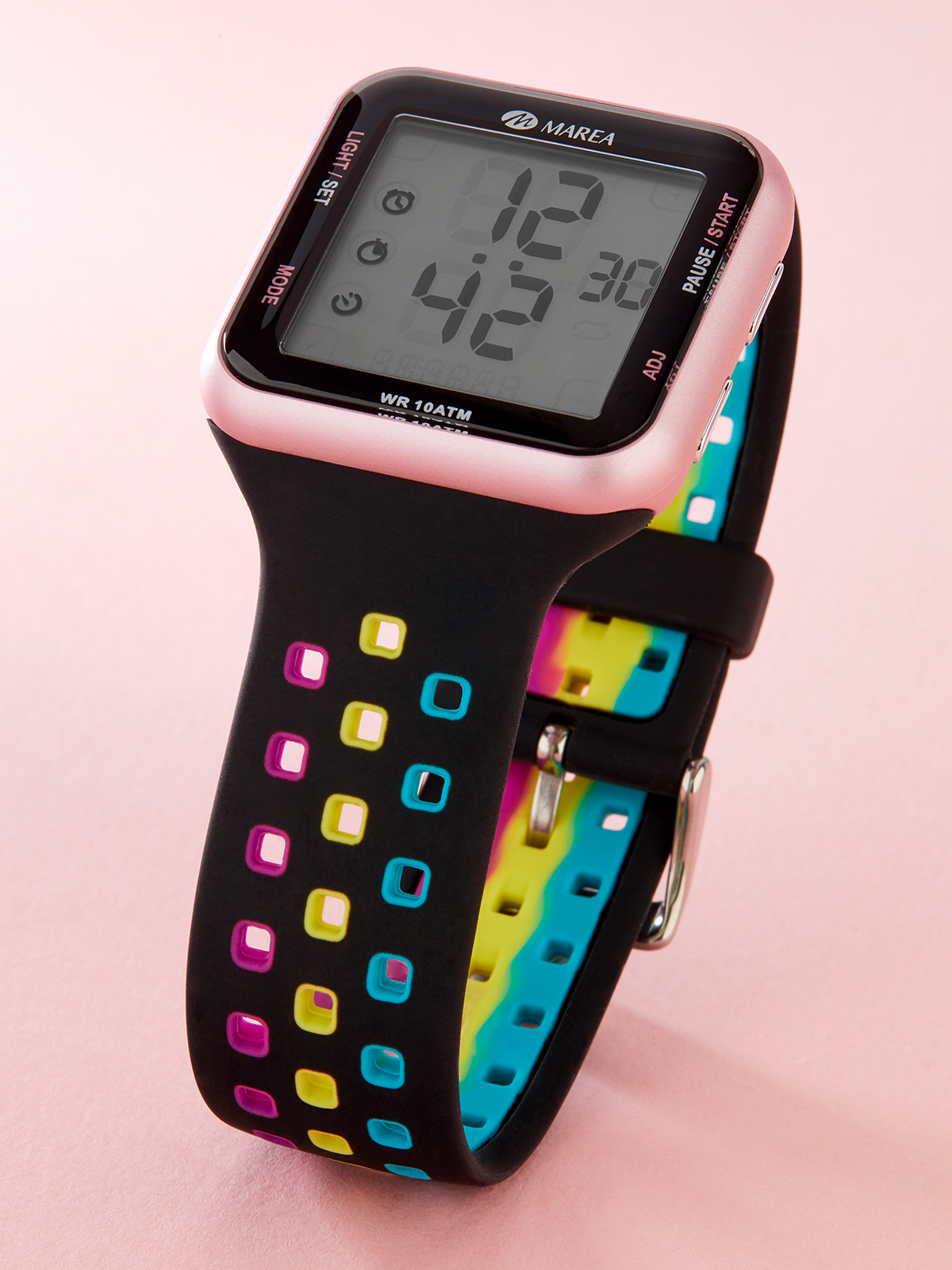 Funciones: cronómetro, cuenta atrás, alarma, luz, fecha, formato 12-24h