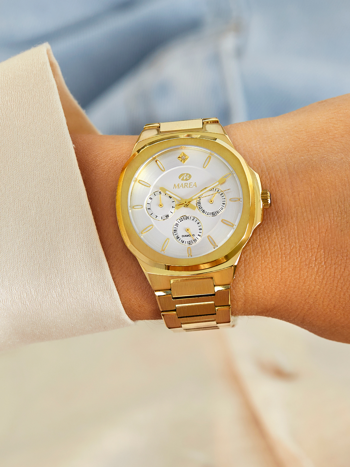 Material Caja: Acero color dorado.